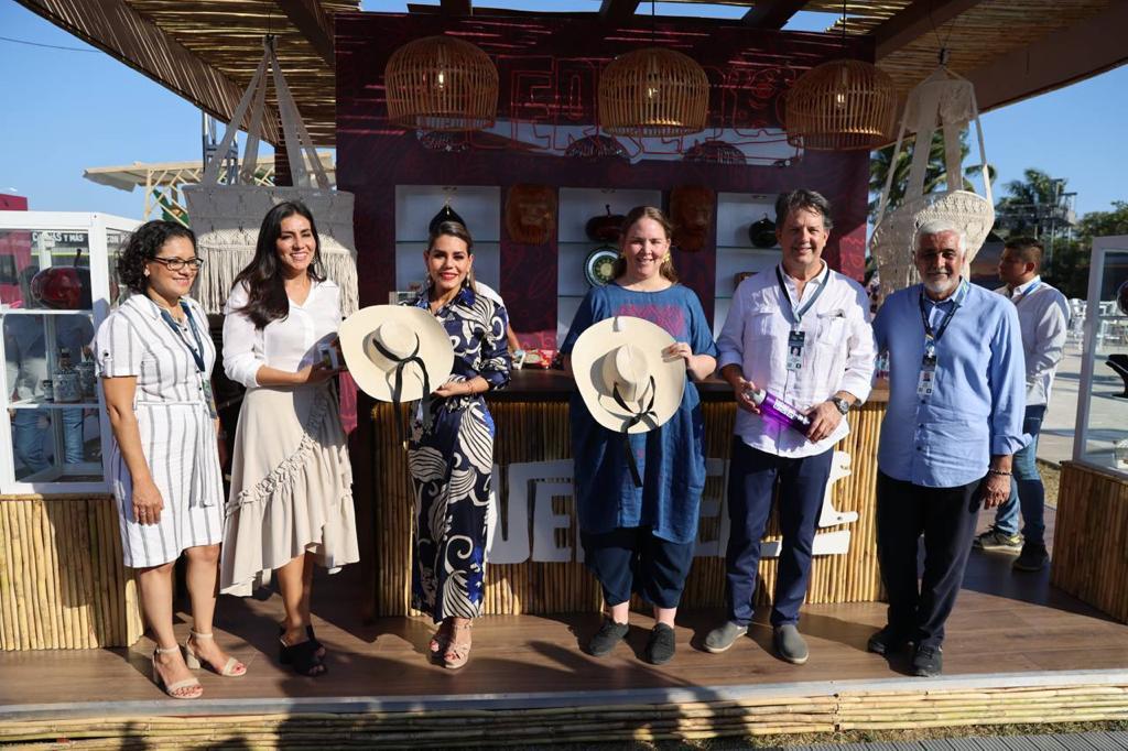 Enseguida realizó un recorrido por las instalaciones de la Arena GNP y el área comercial, en donde visitaron el stand de Guerrero, en el que artesanos de todas las regiones exponen y comercializan sus productos.