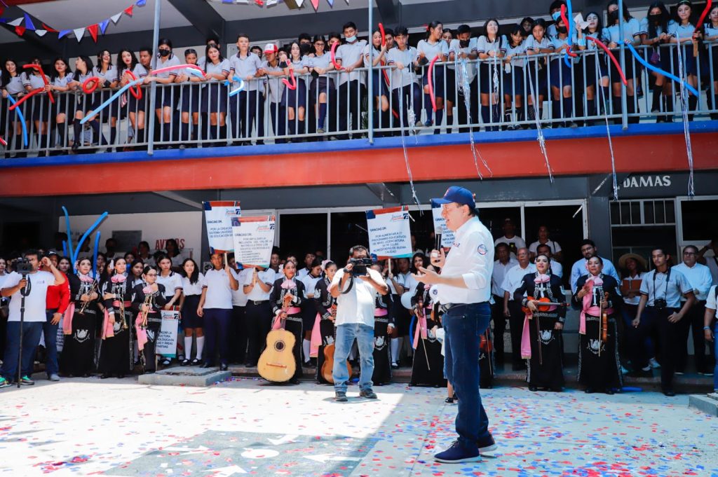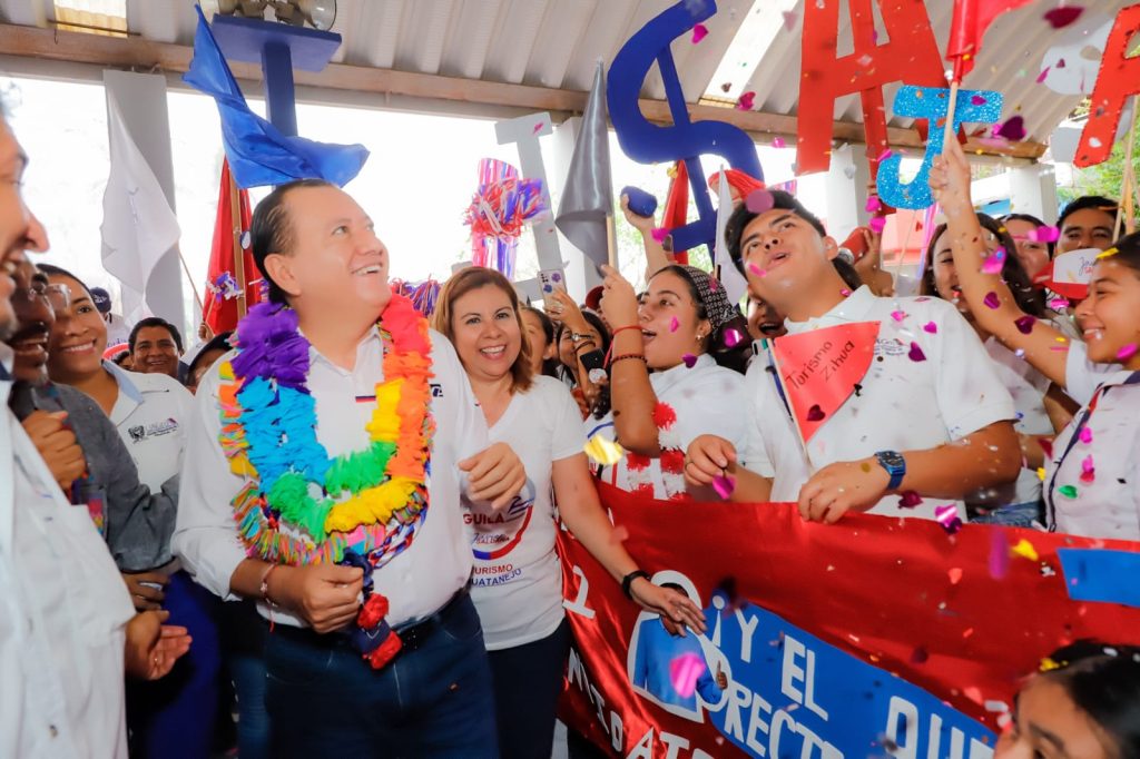 Con un recibimiento muy emotivo, Javier Saldaña Almazán visitó este viernes la Escuela Preparatoria No.25 de Petatlán, una de las mejores escuelas de Nivel Medio Superior del país con indicadores de calidad muy elevados, donde los estudiantes y maestros ratificaron su apoyo al proyecto del candidato para consolidar los avances académicos.