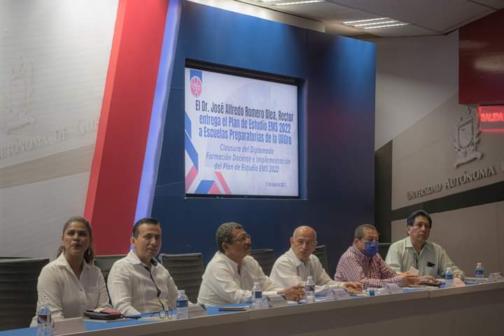 El Dr. José Alfredo Romero Olea, Rector de la UAGro entregó el Plan de Estudios EMD 2022 a directores de Escuelas Preparatorias de la UAGro, donde ratificó que la institución está mejorando en sus procesos académicos de manera continua, siendo la #UAGro la primera institución educativa en Guerrero que implementa su nuevo plan de educación superior atendiendo las políticas educativas nacionales.