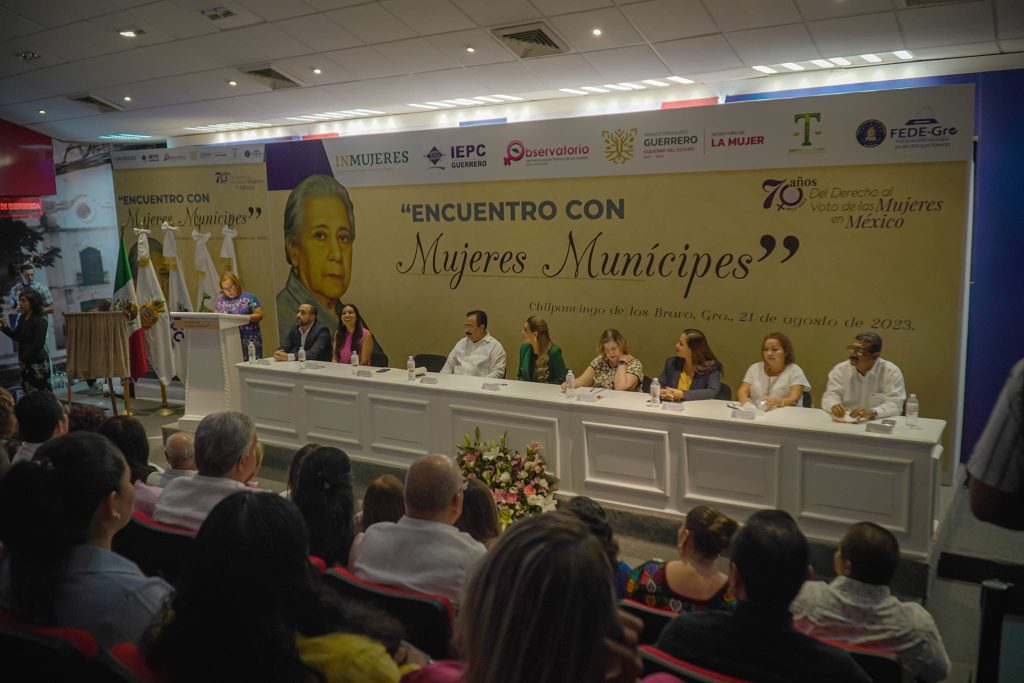 El Dr. José Alfredo Romero Olea, Rector de la UAGro, participó como invitado en el «Encuentro con Mujeres Munícipes,» conmemorando los 70 años del derecho al voto de las mujeres en México. Durante este evento, se reveló una placa en honor a la Sra. Aurora Mesa Andraca, pionera en ocupar una presidencia municipal en México. La Mtra. Evelyn Cecia Salgado Pineda, Gobernadora constitucional del estado de Guerrero, presidió el acto, acompañada por representantes de diversos órganos de gobierno.