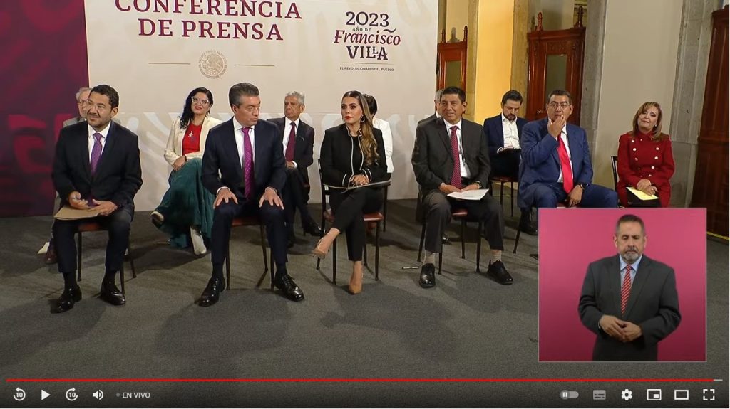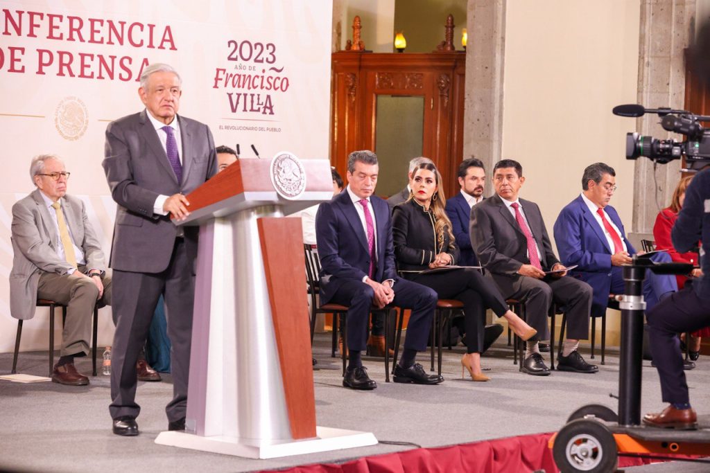 Durante esta conferencia de prensa estuvieron presentes la gobernadora de Tlaxcala, Lorena Cuéllar; los gobernadores de Oaxaca, Salomón Jara; de Puebla, Sergio Salomón; de Chiapas Rutilio Escandón Cadena; el Jefe de Gobierno, Martín Batres, así como la Secretaria de Cultura, Alejandra Frausto Guerrero y la subsecretaria de Ordenamiento Territorial, Edna Vega.