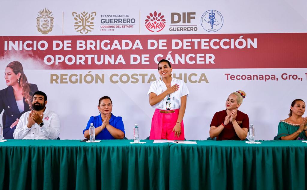 En el municipio de Tecoanapa, la presidenta del DIF Estatal, Liz Salgado Pineda, encabezó el banderazo de inicio de la brigada en la que informó que se realizarán más de 500 estudios gratuitos de papanicolaou, mastografías, consultas médicas, antígeno prostático, ultrasonidos pélvicos y abdominales, así como el seguimiento integral a los casos que resulten positivos a algún tipo de cáncer.