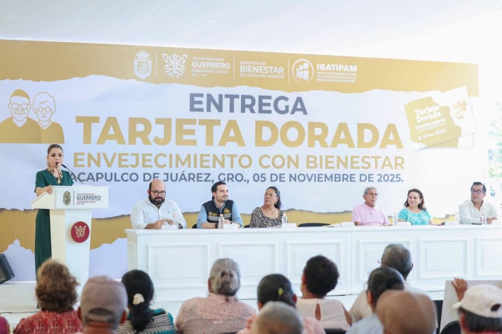 Acapulco, Gro., 5 de noviembre de 2025.- Como un acto de gratitud y justicia social, la gobernadora Evelyn Salgado Pineda entregó apoyos del programa Tarjeta Dorada, en beneficio de adultos mayores, con lo que se busca reconocer su trayectoria y garantizar una vida plena, con bienestar y dignidad. A través de este programa, podrán acceder a diversos descuentos, así como facilidades en diversos trámites; para Acapulco, se tiene como meta apoyar a poco más de 10 mil personas.