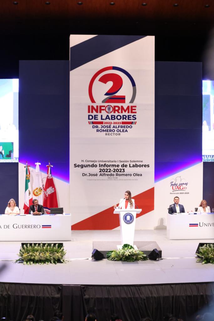 *La gobernadora asistió al 2do Informe de Labores del rector José Alfredo Romero Olea al frente de la UAGro