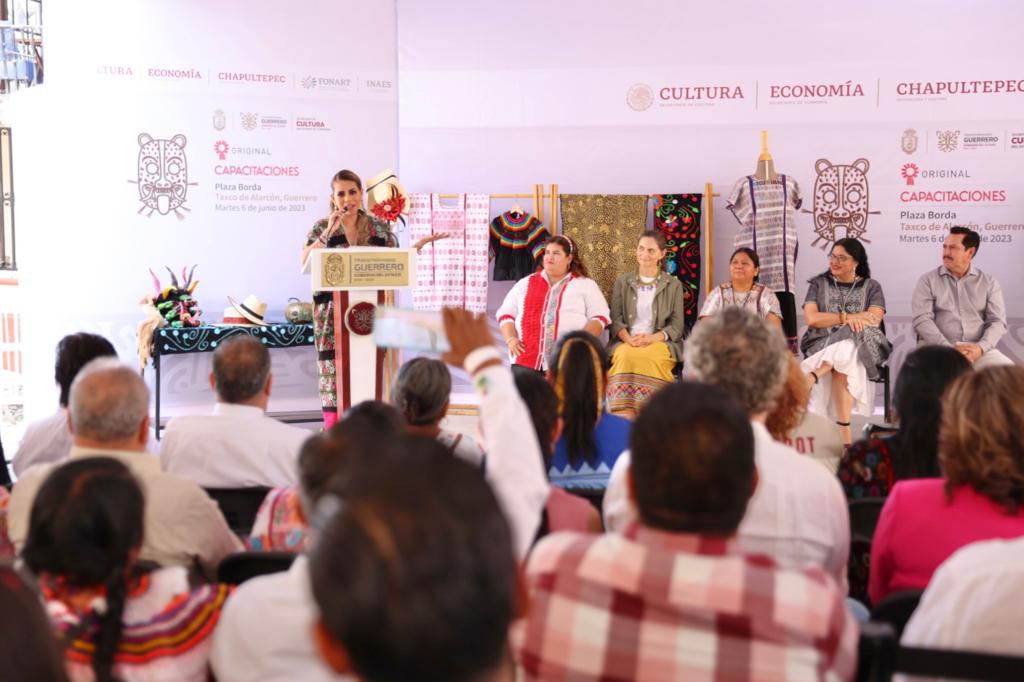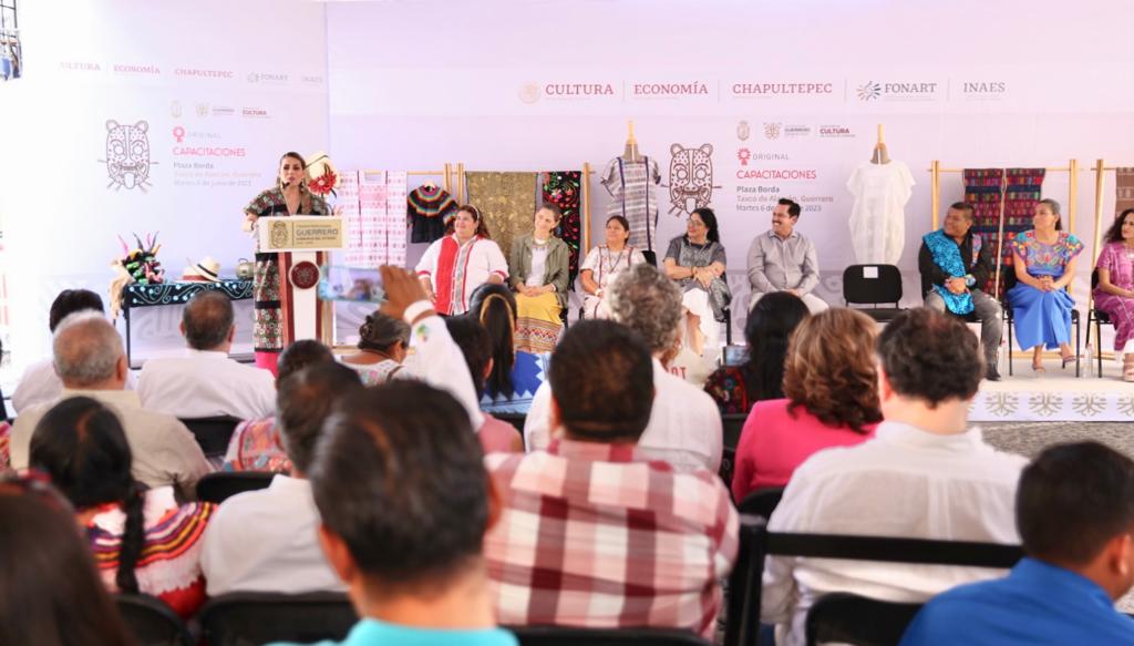 Taxco de Alarcón, Gro. 6 de junio del 2023. – La gobernadora Evelyn Salgado Pineda y la secretaria de Cultura Federal Alejandra Frausto Guerrero dieron inicio en esta ciudad colonial, a la segunda capacitación de «Original» 2023 para la comunidad artesanal de Guerrero, con el objetivo de brindar herramientas para enfrentar el plagio y fortalecer las creaciones únicas de sus confecciones textiles.