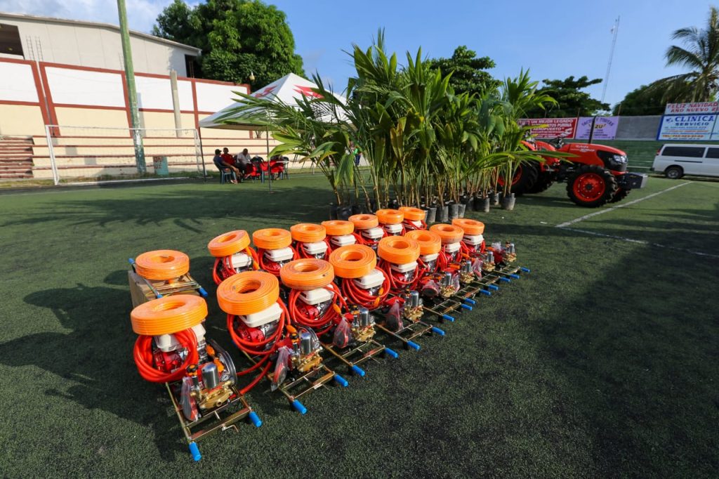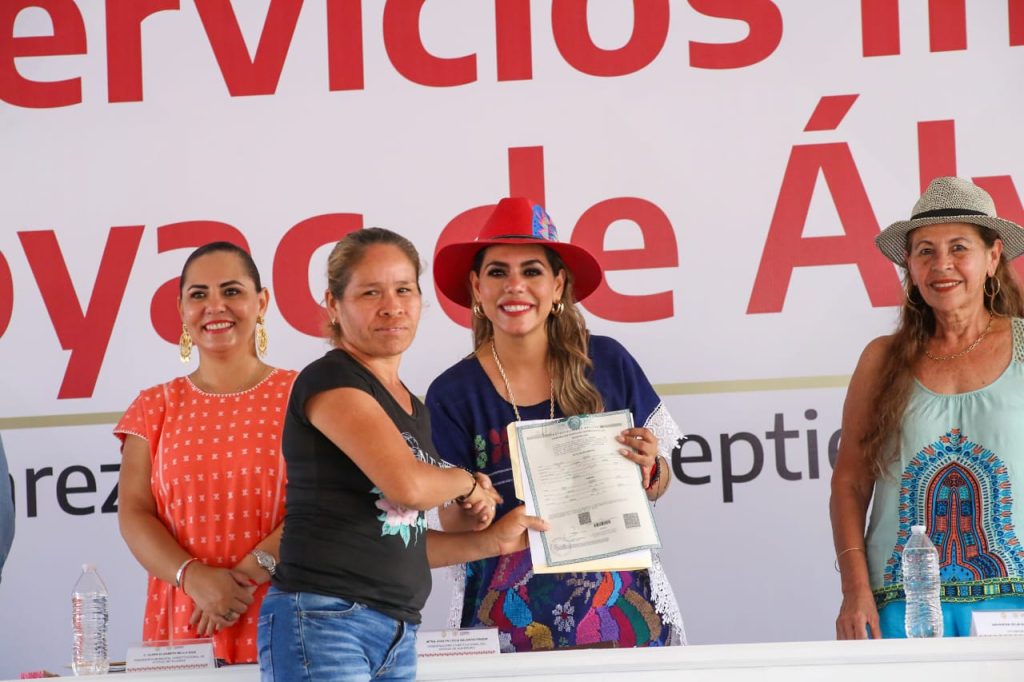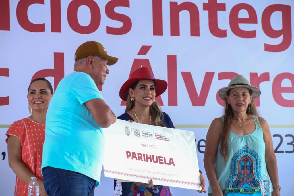 Enseguida la gobernadora entregó apoyos como parihuelas, sementales bovinos, tractores, becas Ignacio Manuel Altamirano, aclaraciones, nulidades y registros de nacimiento, entre otros servicios.