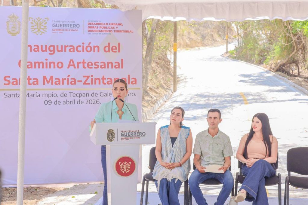 Santa María, Mpo. de Tecpan de Galeana, Gro., 9 de abril de 2026.- Al inaugurar el camino artesanal Santa María-Zintapala, en donde se invirtieron casi 10 millones de pesos, la gobernadora Evelyn Salgado Pineda destacó que en Guerrero se impulsa una transformación desde la raíz, con los pueblos y las comunidades, para lograr un estado en mejores condiciones.
