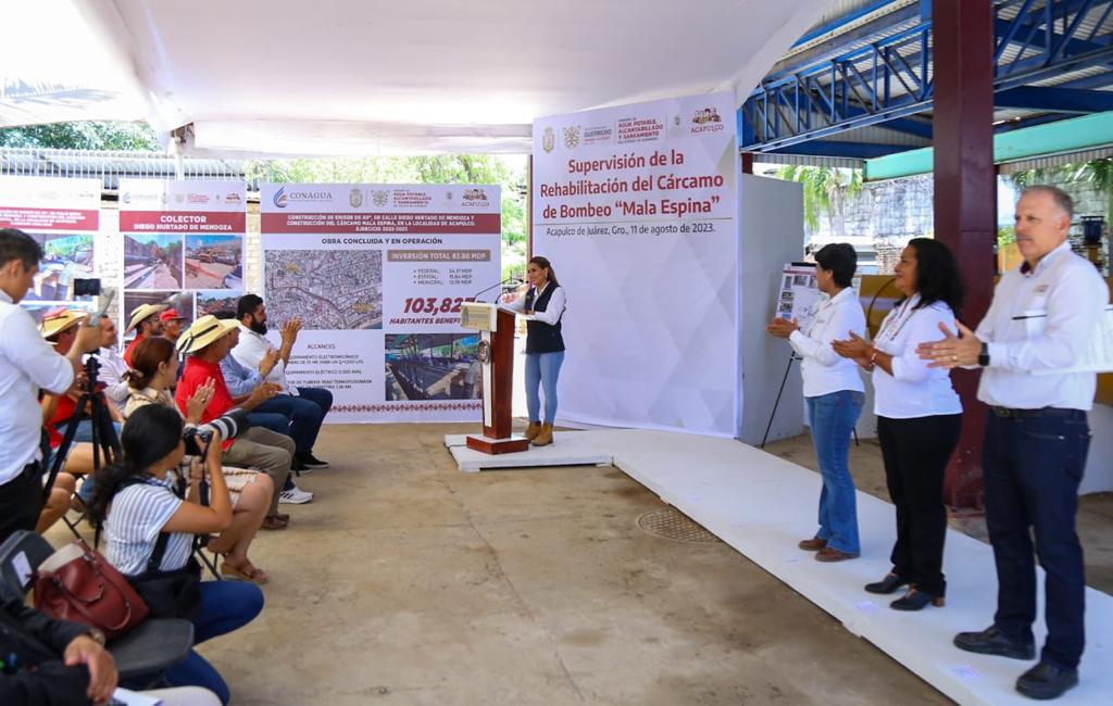 En compañía de la alcaldes Abelina López Rodríguez así como del director de la Comisión de Agua Potable, Alcantarillado y Saneamiento del Estado de Guerrero (Capaseg), Facundo Gastélum Félix y la directora de la Comisión Nacional del Agua (Conagua) en Guerrero, Norma Arroyo Domínguez, la gobernadora enfatizó que este trabajo conjunto de la mano del presidente Andrés Manuel López Obrador, está encaminado a promover mejores condiciones de vida para la población, impulsando obras de gran relevancia que permitirán el saneamiento de las aguas residuales evitando la contaminación de la bahía de Acapulco.