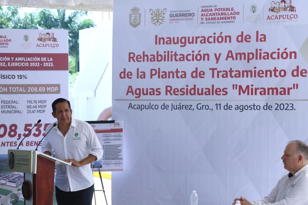 Más tarde, la gobernadora se trasladó a la planta de tratamiento Miramar, en donde inauguró la construcción del colector sanitario, así como la rehabilitación y ampliación de este espacio, en donde se invirtieron más de 208 millones de pesos, en beneficio de 108 mil 535 habitantes. Ahí, el titular de Capaseg detalló que esta obra permitirá atender la demanda actual, pero también una proyección futura del crecimiento población que tendrá esta importante zona de Acapulco.