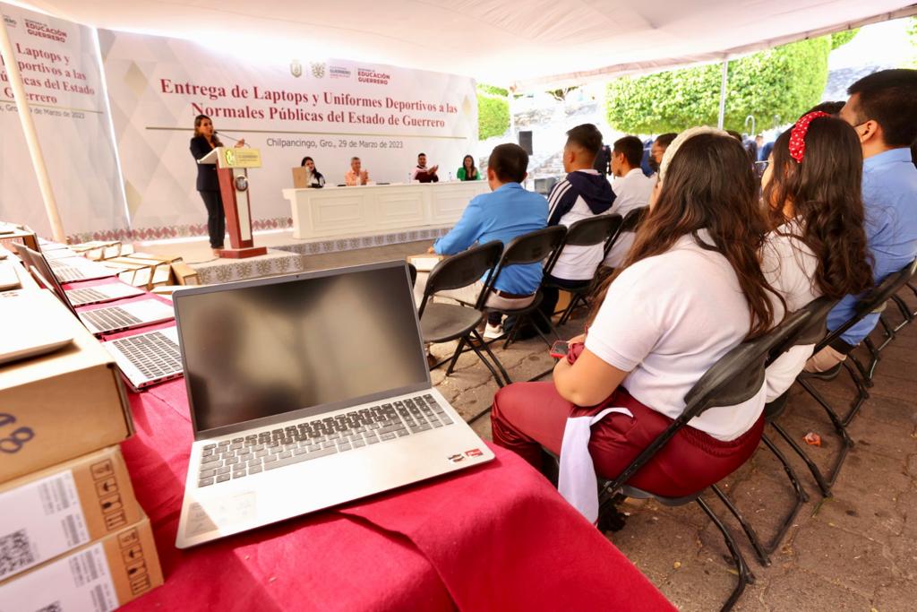 Chilpancingo, Gro. 29 de marzo del 2023. – «La educación es la clave para el desarrollo y bienestar de Guerrero y vamos a redoblar esfuerzos para seguir invirtiendo en la formación de los docentes», afirmó la gobernadora Evelyn Salgado Pineda al entregar mil 280 Laptops, así como uniformes deportivos beneficiando a más de 2 mil estudiantes de las ocho normales públicas del estado con una inversión superior a los 23.8 millones de pesos.