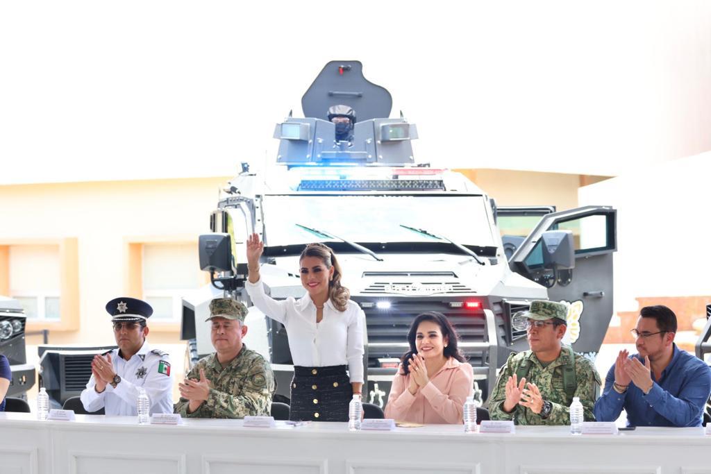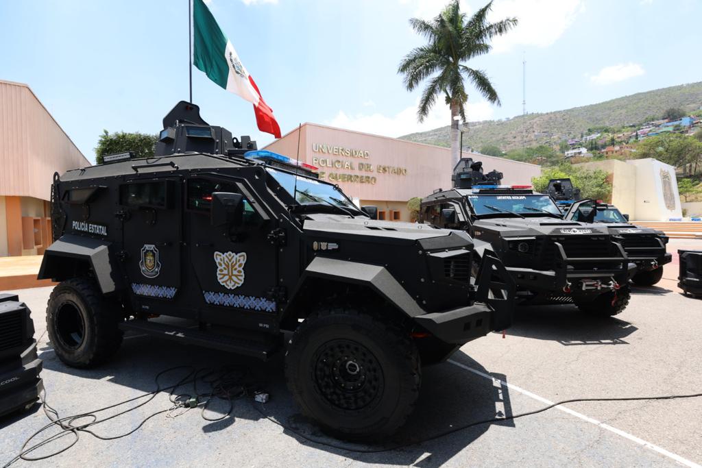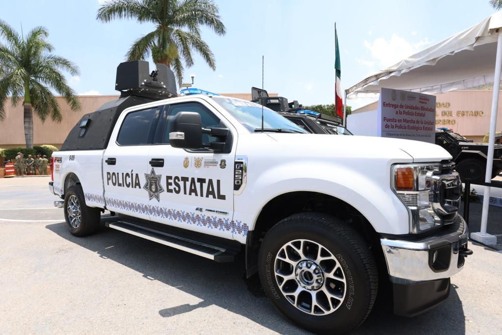 En este contexto y con una inversión de casi 70 millones de pesos, la gobernadora Evelyn Salgado hizo entrega de ocho unidades blindadas, seis tipo camiones «Black Mamba» de alto blindaje y todo terreno, así como dos camionetas blindadas que se integran de inmediato a la operatividad policial, fortaleciendo el parque vehicular moderno de la Policía Estatal.