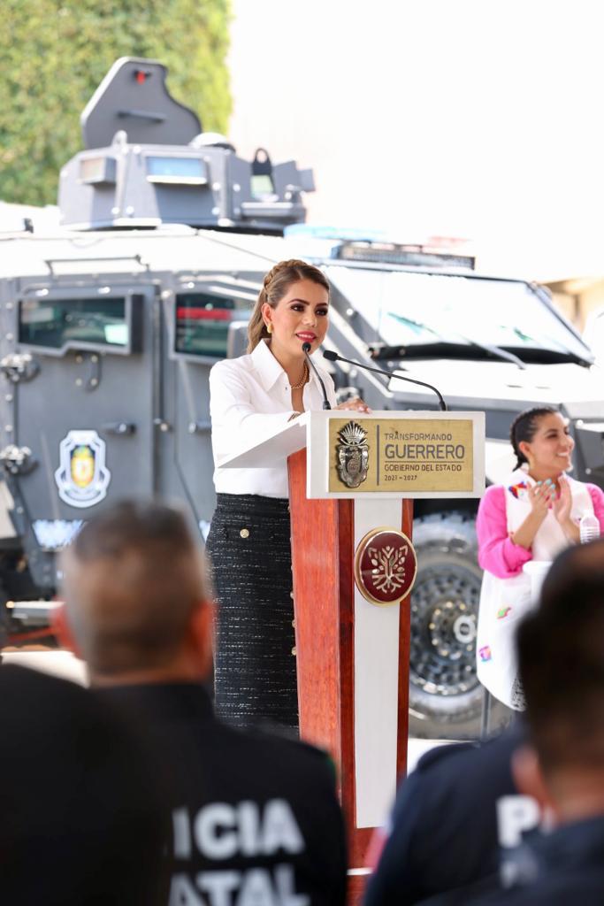 La mandataria estatal puntualizó que la integración de esta unidad de la policía y el equipamiento histórico de unidades que se hace a la institución encargada de la seguridad del estado, se refrenda el compromiso de este gobierno con el mensaje claro de no dar ni un paso atrás en el objetivo de construir un Guerrero en paz, con bienestar para todas y todos.
