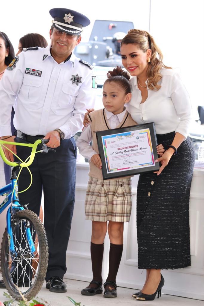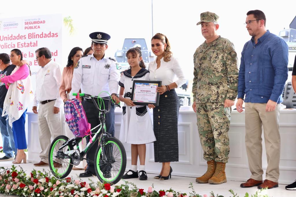 Durante el evento la gobernadora Evelyn Salgado junto con el senador Félix Salgado Macedonio y el secretario de Seguridad Pública, Evelio Méndez Gómez, realizaron la entrega de premios a las niñas y niños ganadores del Concurso Estatal de Dibujo Infantil 2023 «Amiga y Amigo Policía» que consta de un kit escolar, bicicleta y reconocimiento a los primeros lugares de las tres categorías.