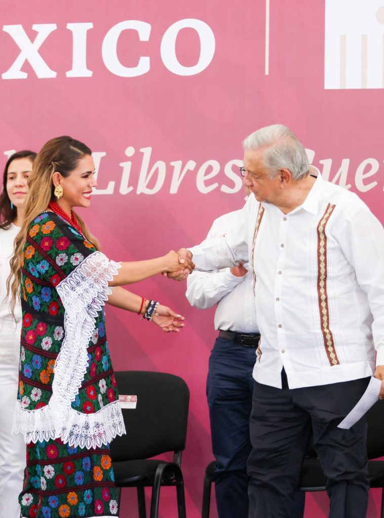 Durante el evento en la Unidad Deportiva de esta cabecera municipal, la gobernadora le dio la bienvenida al jefe del Ejecutivo federal y le expresó su beneplácito por su presencia en este lugar tan representativo, que ha sido testigo de grandes momentos en la historia. Además, le agradeció su apoyo hacia quienes más lo necesitan, a través de distintas estrategias como los programas sociales, que han sido de gran ayuda para lograr el objetivo común de afianzar la transformación del estado.