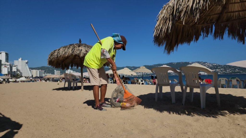 El director del organismo público descentralizado del gobierno del estado, Alfredo Lacunza de la Cruz, destacó que, para mantener las playas en óptimas condiciones, el personal operativo de la Promotora inicia diariamente a las 6:30 horas sus actividades de recolección de los residuos sólidos y el barrido manual de la franja de arena en las playas del puerto.