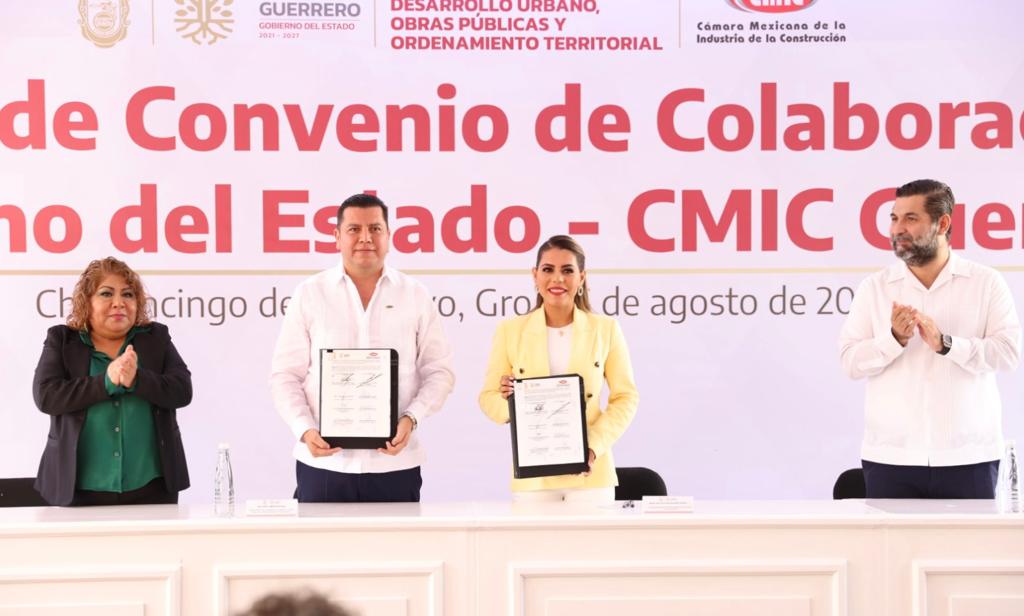La mandataria estatal suscribió un convenio de colaboración para el fomento y apoyo a la capacitación de los trabajadores de la industria de la construcción con el Presidente del Comité Directivo de la CMIC Delegación Guerrero, Carlos Francisco Sevilla Rodríguez.
