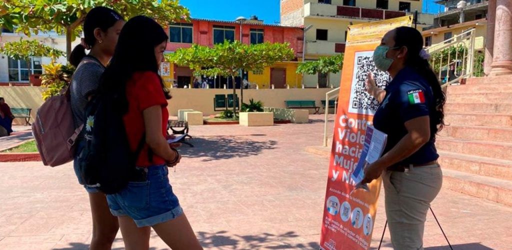 En tanto en inmediaciones de la Plaza de la Paz de la ciudad de Ayutla de los Libres, instalan un módulo informativo para prevenir, atender y erradicar la violencia en contra de mujeres, adolescentes, niñas, niños y personas en situación de vulnerabilidad.