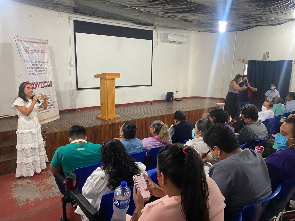 Zihuatanejo, Gro., 12 de abril de 2023.- Con el objetivo de respetar el derecho universal a la salud, así como los derechos humanos del personal de la dependencia estatal, la secretaria de Salud en Guerrero, Aidé Ibarez Castro, encabezó el arranque de la jornada de capacitación en materia de derechos humanos al personal de la Jurisdicción Sanitaria 05 Costa Grande.